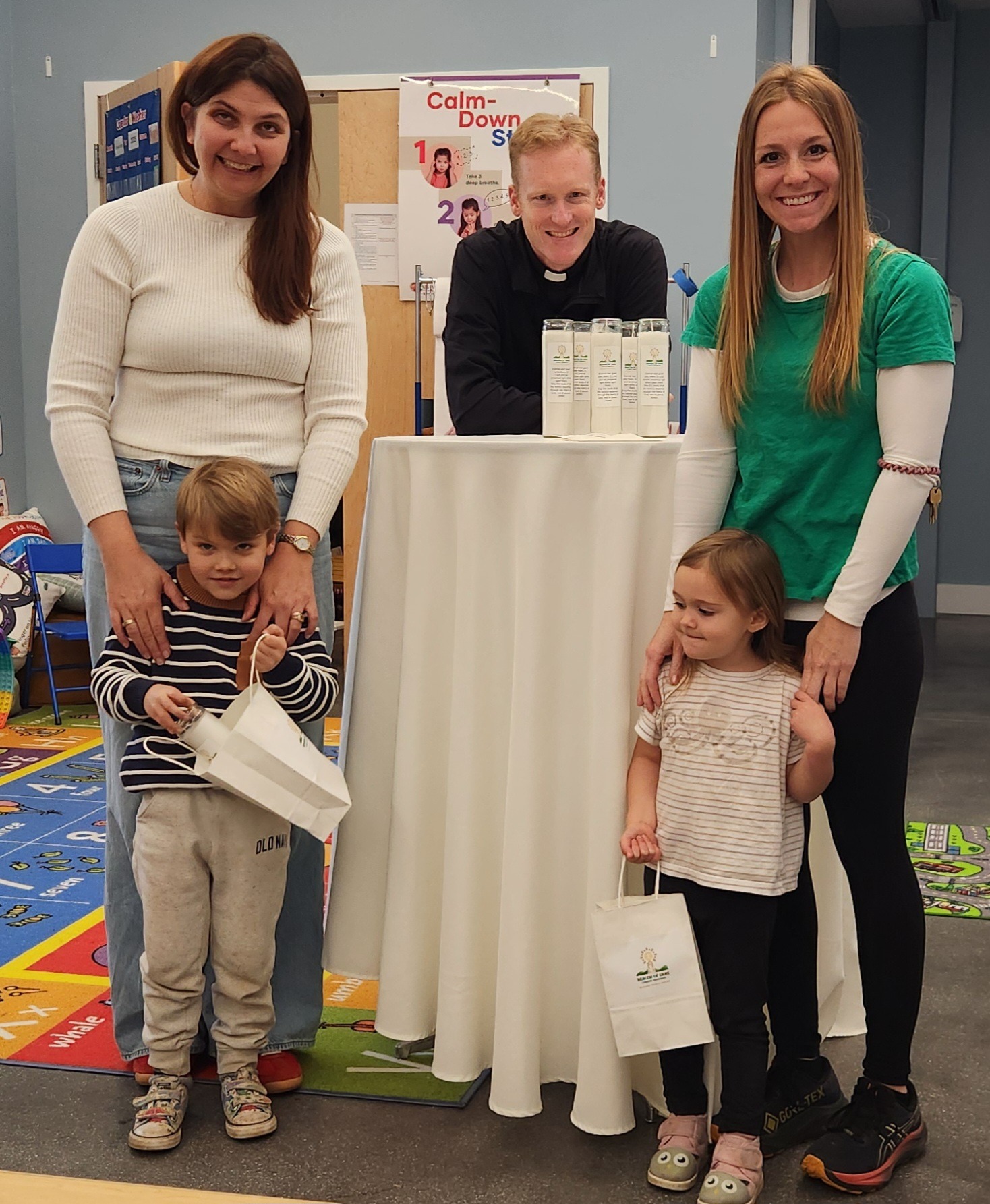 Preschoolers enjoy their first visit to Blessed Sacrament Church to participate in the Pope Saint John Paul II story walk posted in the back stairwell entrance. Students learned Pope Saint John Paul II was from Poland. With some of our students sharing Polish heritage, we were able to make connections to our families as well as foster discussions about other family ancestry.