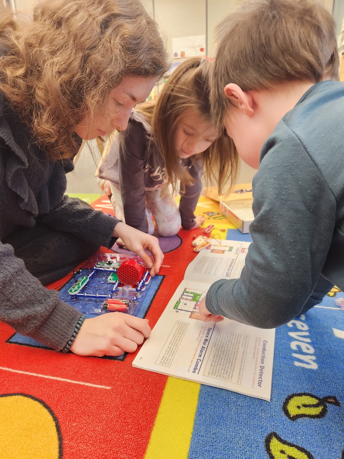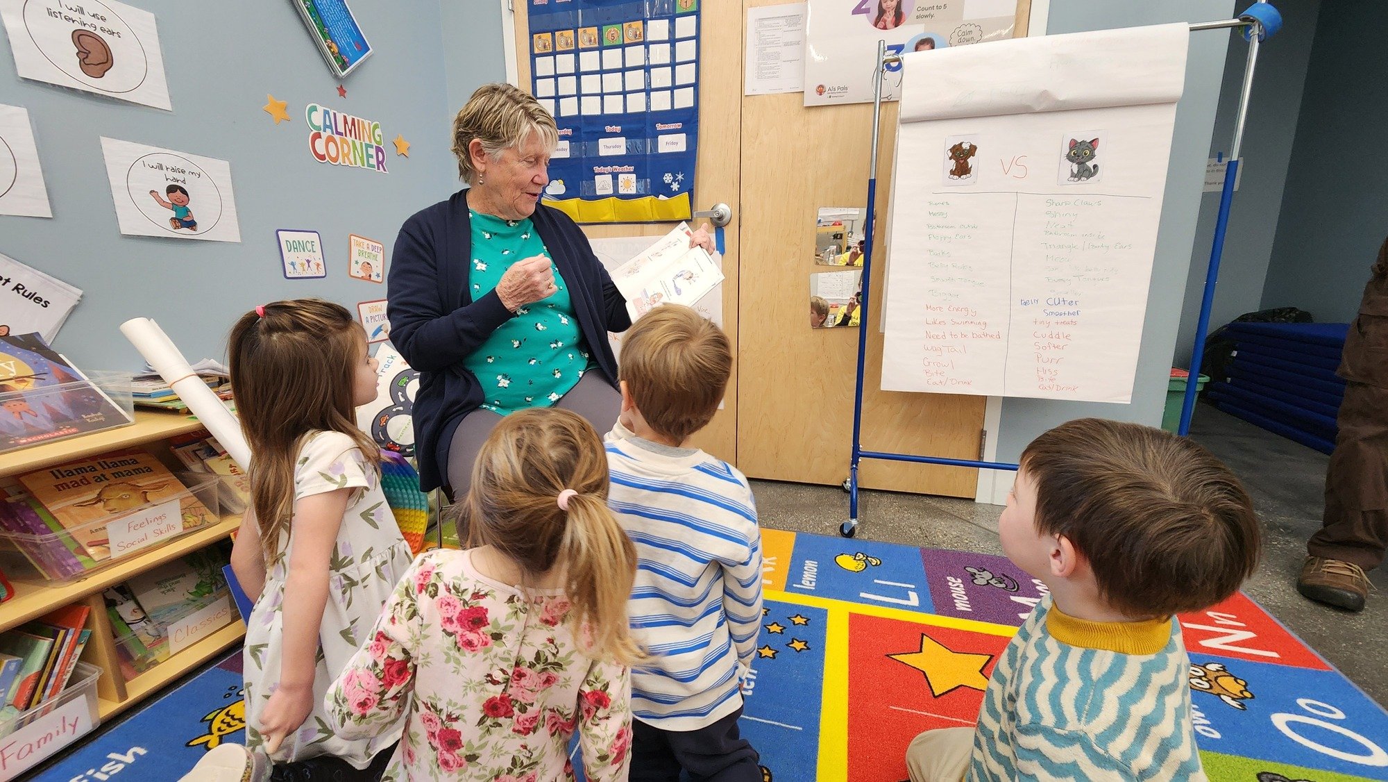 The Preschool classroom library and meeting circle area.