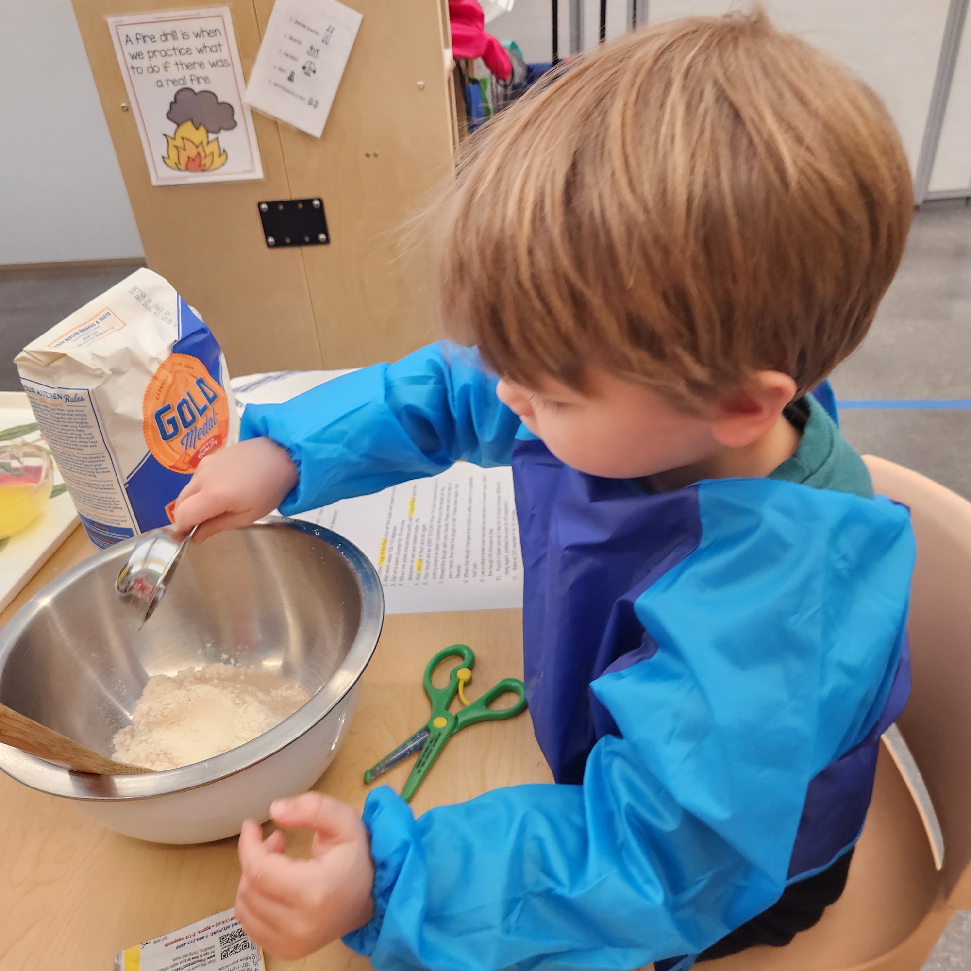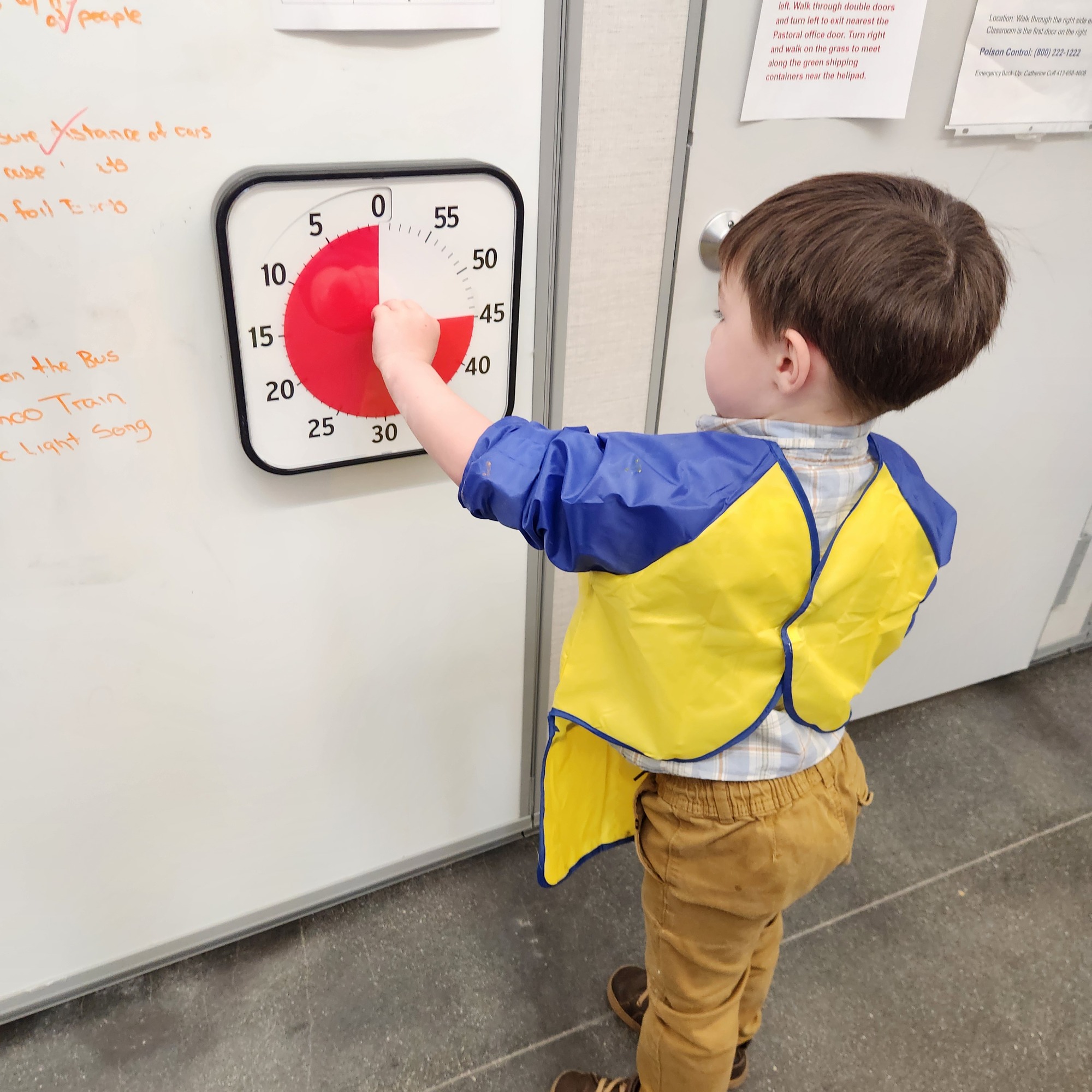 Installing new door locks on the double doors. They will allow preschoolers to exit, but lock off any public access.