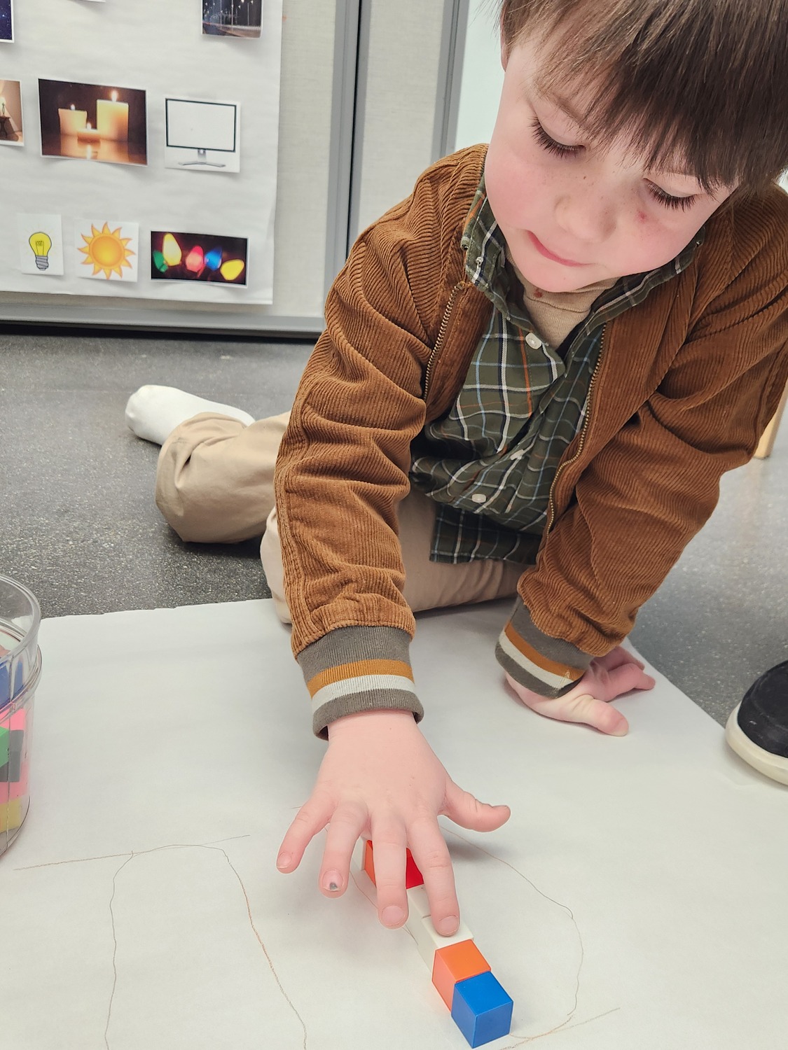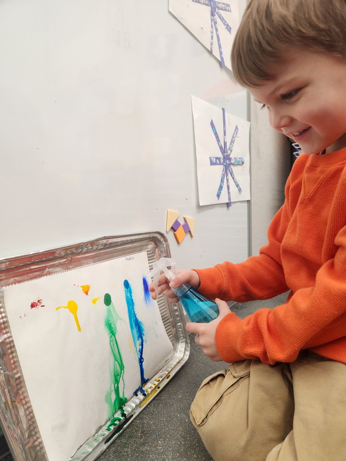 Fine motor work to create colored lightening bolts